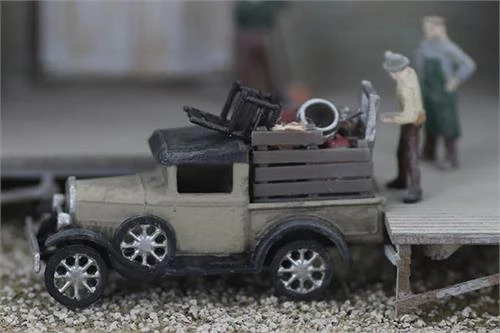 HO Scale 1930s Pick Up Truck Model Hauling Junk Load Finished 1/87 Vehicle