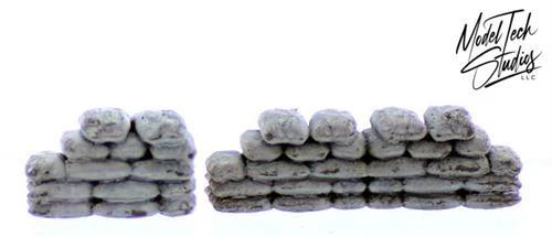 HO scale Detail SACK Linear Piles with 60 sacks stacked Pre Painted. Includes a larger and smaller Linear Pile.