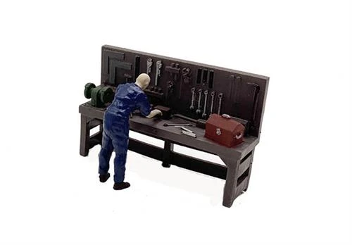 HO Scale Detail WORKBENCH, Tools and Hardware with Craftsman Figure, Finished Set