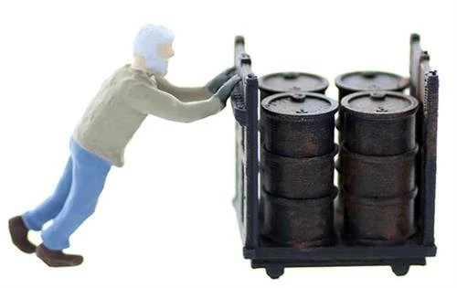 Ugh….this load is HEAVY. He’s pushing a fully loaded Oil Drum dolly. This Warehouse or Freight Dock Laborer is busy