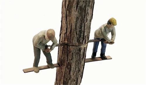 Father and Son Lumberjack Team….in the woods Felling a tree with their cross cut saw….Great addition to any logging operation / backwoods N Scale Scene. Figures “In Action” sawing a tree