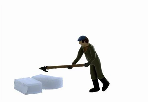 Do you have the Classic RR Icing Platform ? Here is your dock worker skidding Ice Blocks to load your REFERS ! He has his Ice HOOK in hand and comes complete with Ice Blocks as well !
