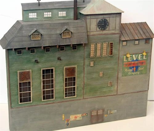 Create a detailed O Scale Industrial Factory in your background…..
