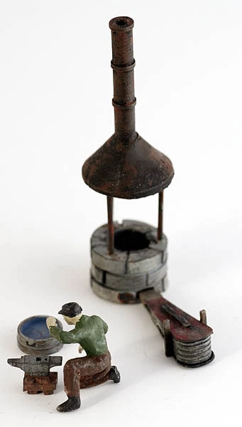 O Scale Blacksmith FORGE, Detail Set includes the Stone Pit, Exhaust Hood and Stack, Water Pail, Anvil and Bellows. Super Detail your Industry scenes, Engine Repair Facility, Logging operation, Farm Blacksmith scene etc.