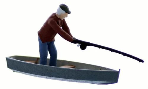 the whole set…the fisherman with his pole and fishing line included. As well as his small fishing rowboat and boat oars too ! Great little set that comes pre painted for you !