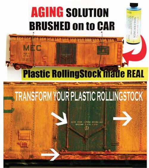 Take out of the box, Plastic looking Rollingstock and give it a makeover…..make it look “Roadworthy”……grimy and rusty with this set…it can transform the look of your fleet quickly