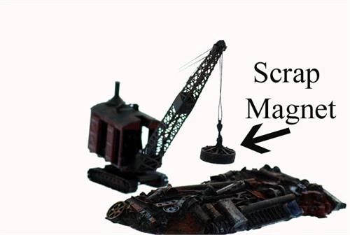 S Scale Scrap Metal Magnet, approx 1 ” diameter. Perfect for RR car loads, Scrap Cranes, Scrap Yard Detailing, Industrial Detailing. Comes Pre Finished for you.