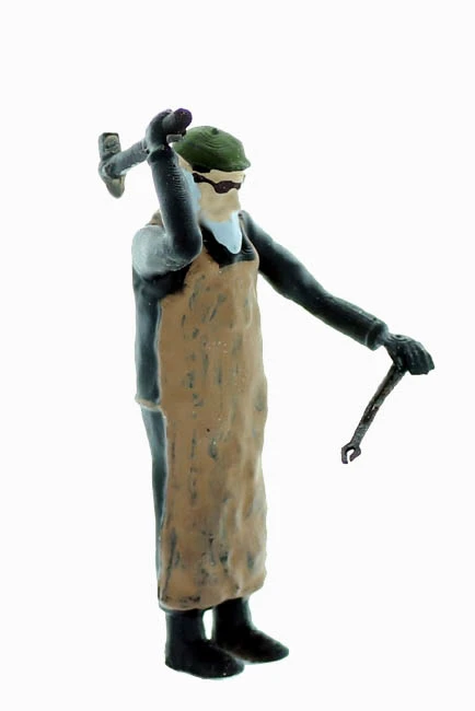 The Blacksmith “In action” swinging his hammer and holding his tongs.